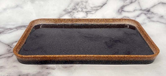 Epoxy Tray Black and Gold Glitter