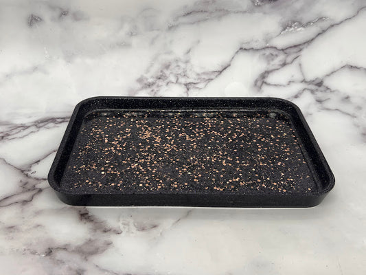 Epoxy Tray Black with Chunky Gold Glitter